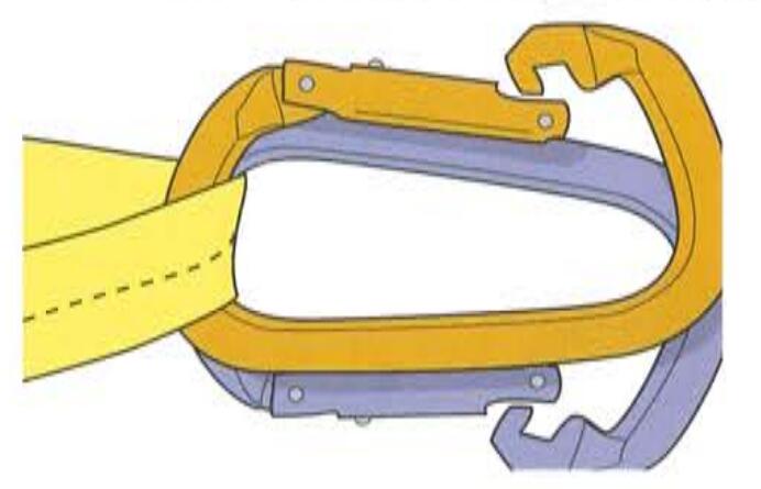 無鎖安全鉤,或者未鎖緊的有鎖安全鉤容易引起滑出現象(rollout)。安全鉤的尺寸和形狀、將要鉤掛的器材以及您的扭轉動作都可能造成開口被推開和安全鉤的滑出現象。查看與您安全吊帶連接的安全鉤鉤掛點,以確保這種可能不會發生,然后保證安全鉤開口一直處于鎖緊狀態,或者使用成對的無鎖安全鉤。